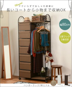 【6時間限定!ポイント5倍★5/15(土)18時〜24時】ハンガーラック(引き出し7杯ミドル) 幅80cm (ブラウン/ホワイト)(コートラック コートハンガー パイプハンガー ハンガー掛け 衣類収納 省スペース コンパクト 新生活 オシャレ アイアン家具 チェストハンガー)