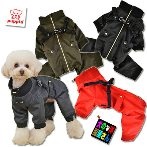 犬服 PUPPIA ハーネス一体型秋冬用ジャンプスーツ ベッカー S M Lサイズ(小型犬用)【メール便なら送料無料】つなぎ ロンパース 秋冬服 パピア チワワ トイプードル マルチーズ ミニチュアダックス シュナウザー ビションフリーゼ ポメラニアン パグ 防寒着
