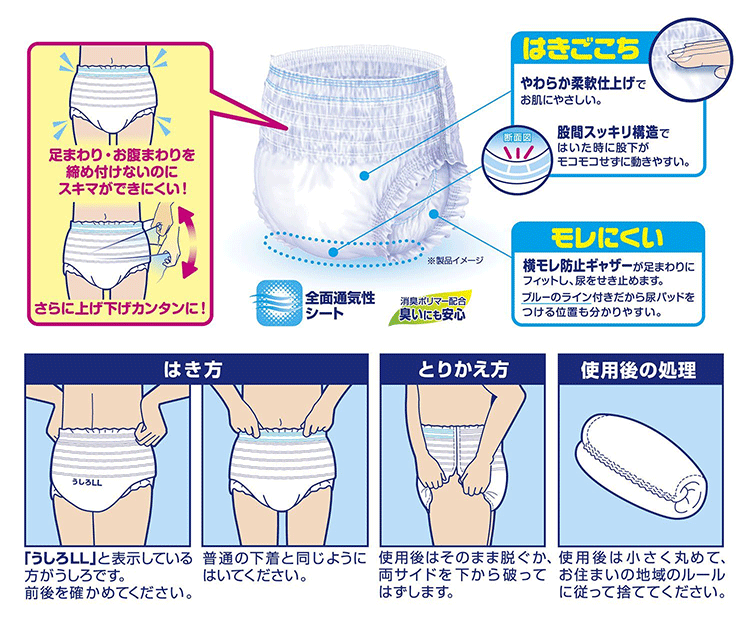 ◆ パンツタイプ :男女兼用 ◆ 適合ウエストサイズ :80〜105cm ◆ 個装入数 :18枚 ◆ 尿吸収回数 :おしっこ約4回 ◆ JANコード:4904585029233 ● 新改良!股間すっきり構造 ● 前後がわかりやすいカラーゴム ● ゆったりソフトギャザー ● 消臭ポリマー配合 ● 横モレ防止ギャザー 以下の方へお勧めです。
